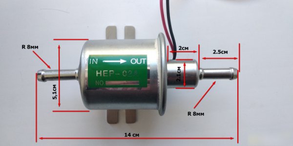 Электрический бензонасос HEP02A идеально отвечает всем моим требованиям. Его основные характеристики следующие:
