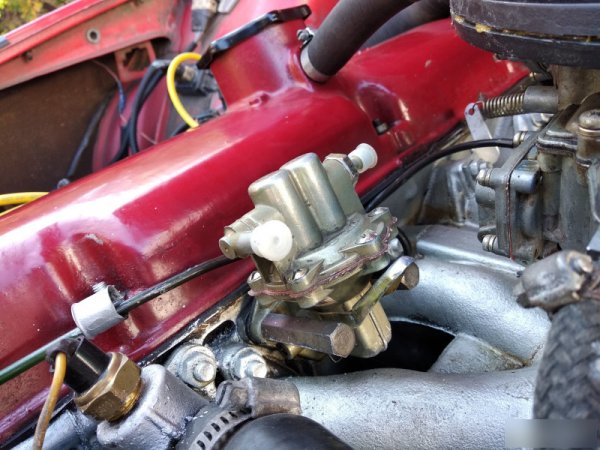 - Открутил механический бензонасос и вытащил шток, после чего прикрутил насос на место.